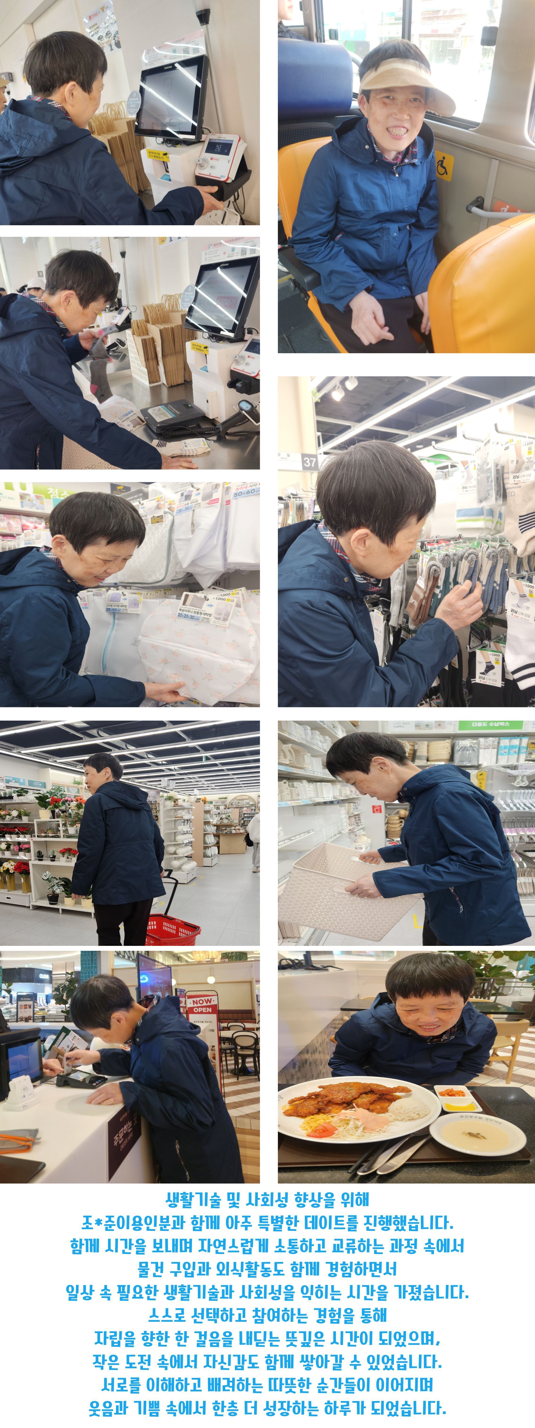 (생활기술 및 사회성 향상)조**이용인과 즐거운 데이트 진행했습니다.
